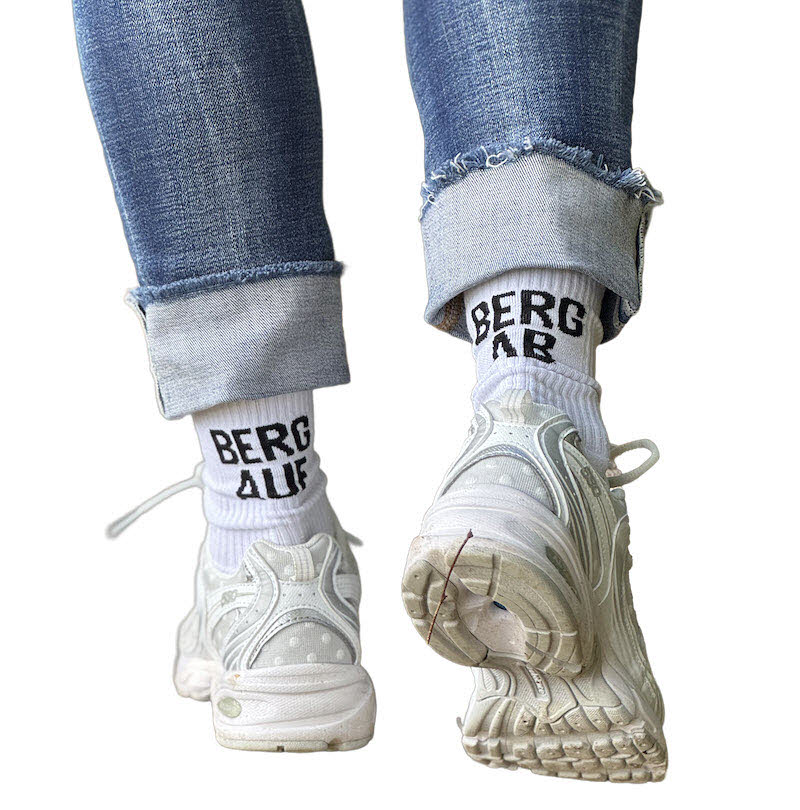 Die Bergkind Socke Berg auf - Berg ab ist das Must-have für alle, die den Berg lieben und Wert auf Style, Komfort und Qualität legen. Egal ob auf Tour, im Alltag oder gemütlich in der Hütte - diese Socke bringt das echte Bergkind-Gefühl an deine Füße.