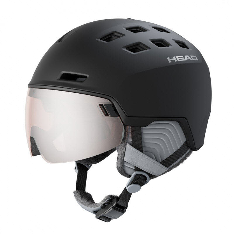 Der In-Mold-Helm von Head hat ein winddichtes und UV-geschütztes Visier, das perfekt geeignet ist für Brillenträger. Wie bei einem Motorradhelm kann während des Fahrens das Visier heruntergeklappt werden, um die Augen zu schützen. Die Öffnung der Lüftungskanäle an der Helmoberseite lässt sich mit einem Schieberegler stufenlos verstellen. Das weiche Microfleece-Material der Beanie-Auskleidung passt sich perfekt an den Kopf an und sorgt zusammen mit dem Belüftungssystem für ein angenehmes Kopfklima.